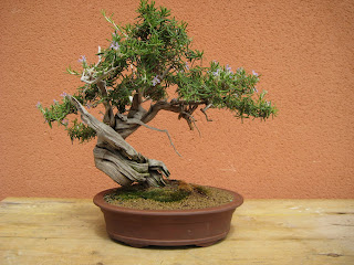 Este romero lo tengo desde mediados del 2006 ,cuando le quite el pequeño cepellón de tierra del campo no tenia ninguna raíz fina ,y lo sembré mas por respeto , que por convicción .. todavía le queda bastante por hacer y buscar una maceta adecuada para poder enterrarlo un poco mas ..